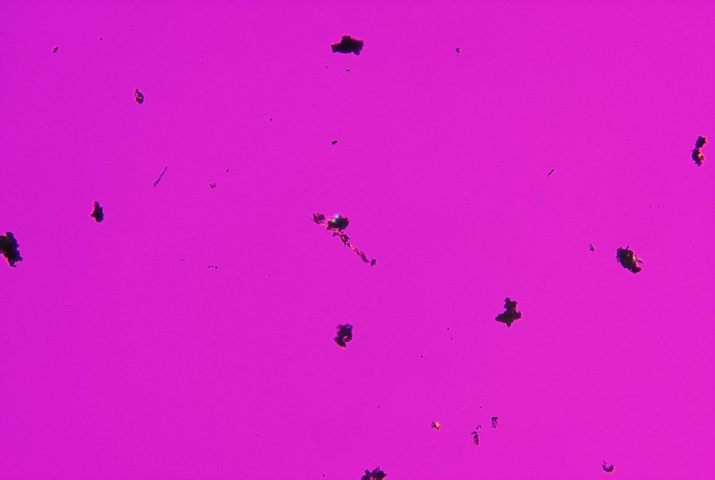 今回の岩綿吸音板はそういった状況で製造されていた物だと思われ、分析を行うとクリソタイルが検出されました。恐らく意図的混入では無いため、量としてはそう多くなく濃度も低いので分析結果(推定含有率)は『0.1~5%』となります。