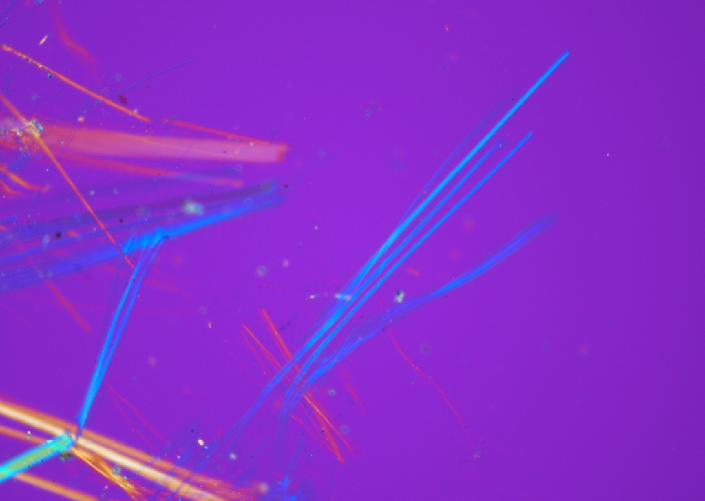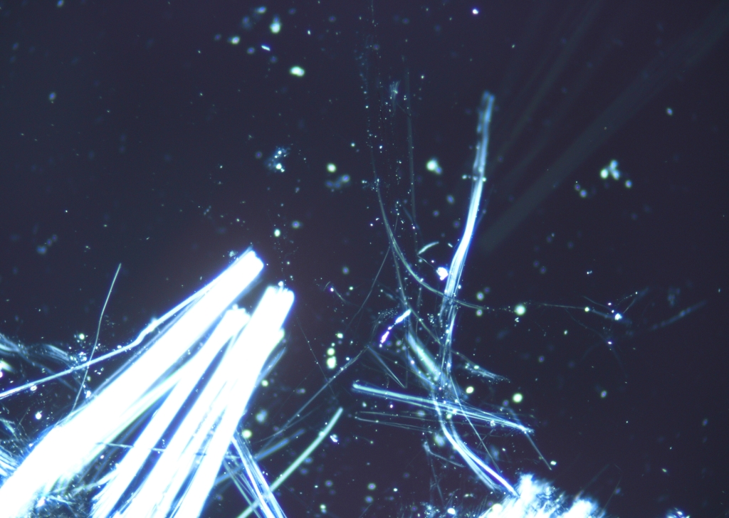 今回はアスベスト自体の含有も多かったことから、そのままの状態でも十分に分析することが出来ました。今回の推定含有率『5~50%』となります。