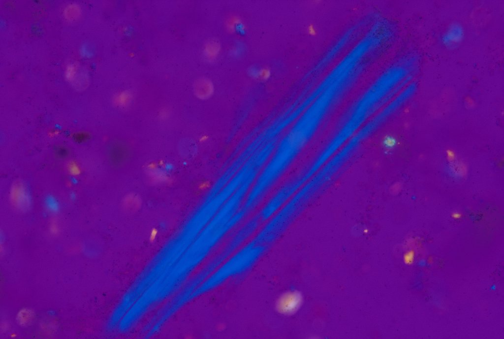 こちらはいつもの前処理を行う前段階で繊維が発見されたため、そのままの状態で分析を行いました。