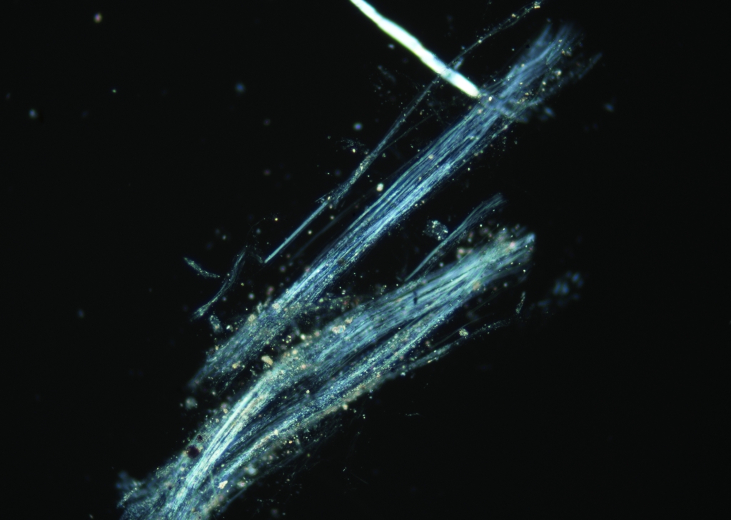 6層全てにおいて層別分析を行い、2層目のみからクリソタイル繊維を確認しました。
