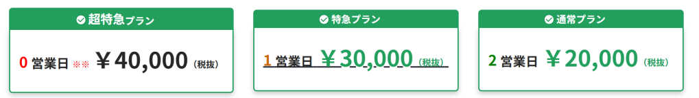 ベスターでは通常プランで2営業日で報告書を発行しております。さらに1営業日以内に報告する特急プラン、当日10時までの持ち込みで当日報告をする超特急プランをご用意しております。