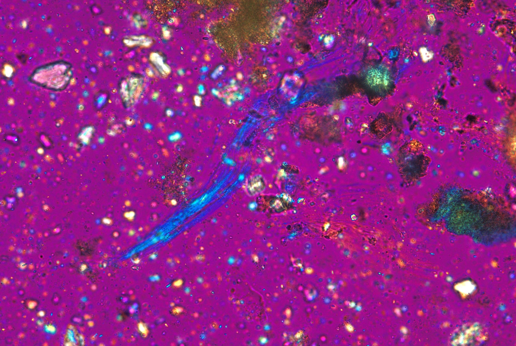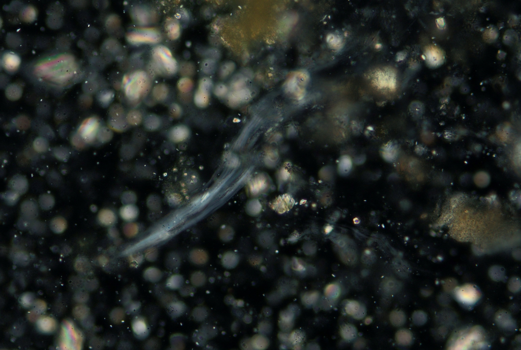顕微鏡で観察すると、上の様なアスベスト(クリソタイル)が検出されました。