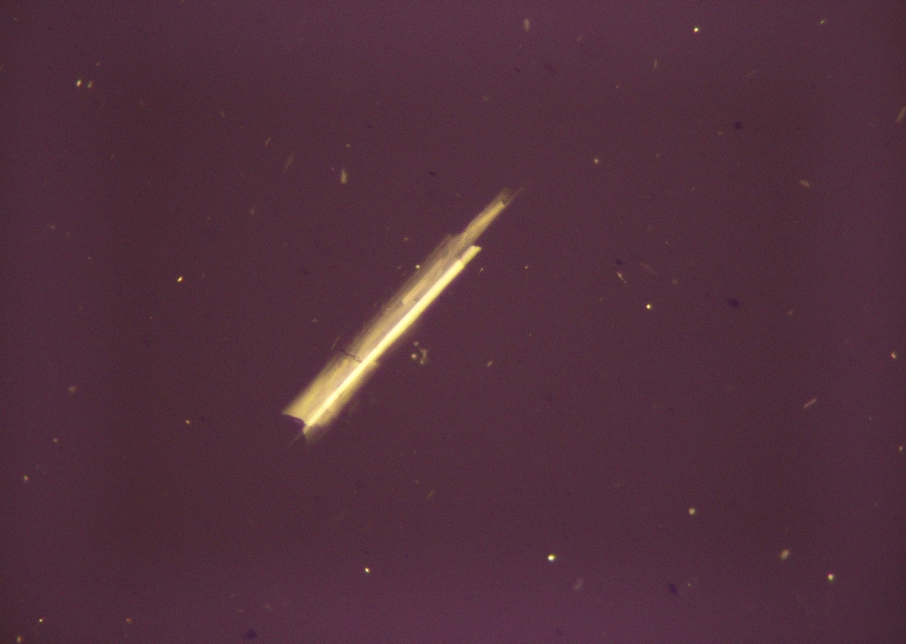今回の検査で検出した繊維からもそうしたアクチノライト様の形状及び挙動が確認され、無事に同定したわけですが、そもそもが小さな繊維であるために発見が容易ではなく、入念な観察が必要です。