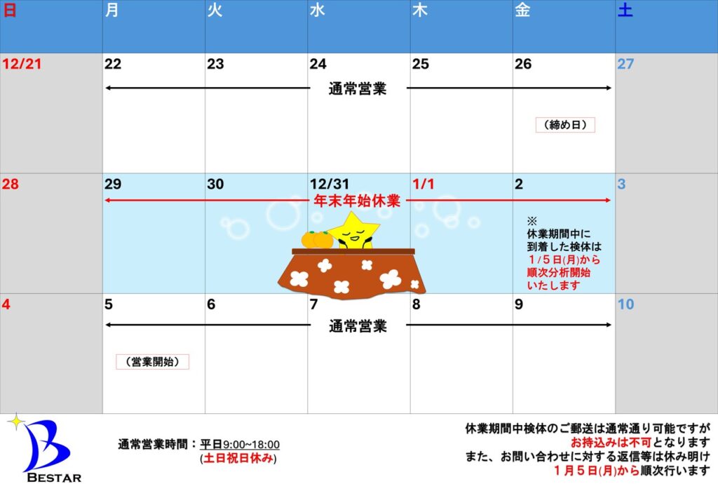 年末年始営業のご案内 《 2025年12月18日 》 平素は格別のご高配を賜り厚く御礼申し上げます。 さて、弊社年末年始期間中の休業日を下記の通りご案内させて頂きます。 期間中はご不便をおかけしますが、何卒ご了承賜ります様、よろしくお願い致します。 « PREV NEWS NEXT NEWS » お知らせ一覧